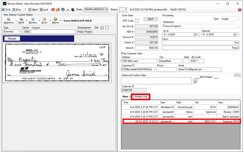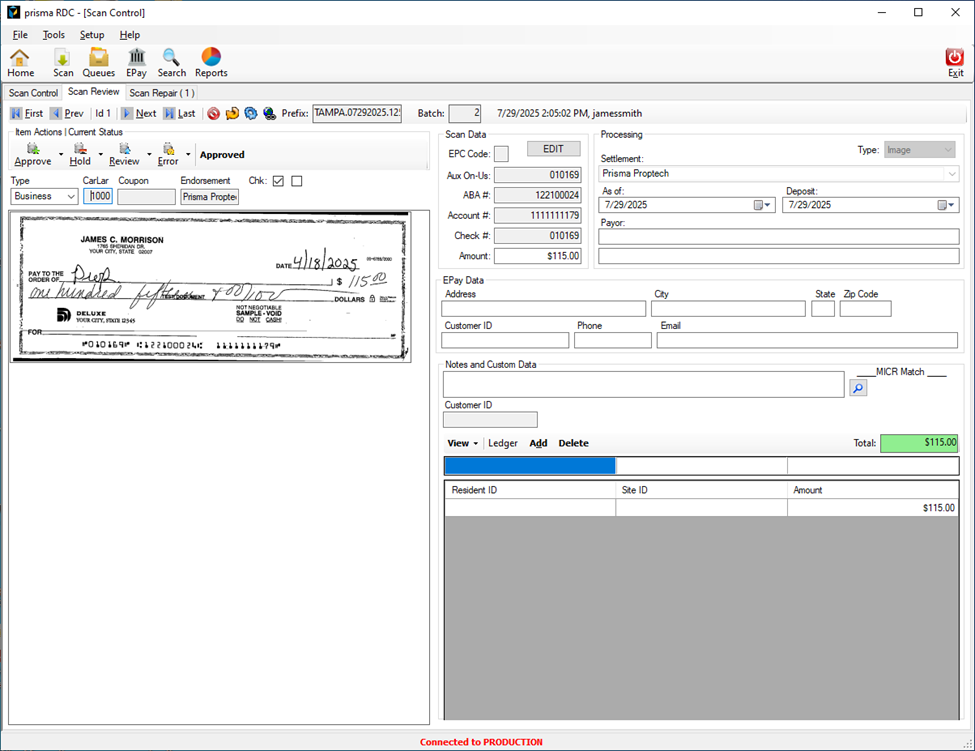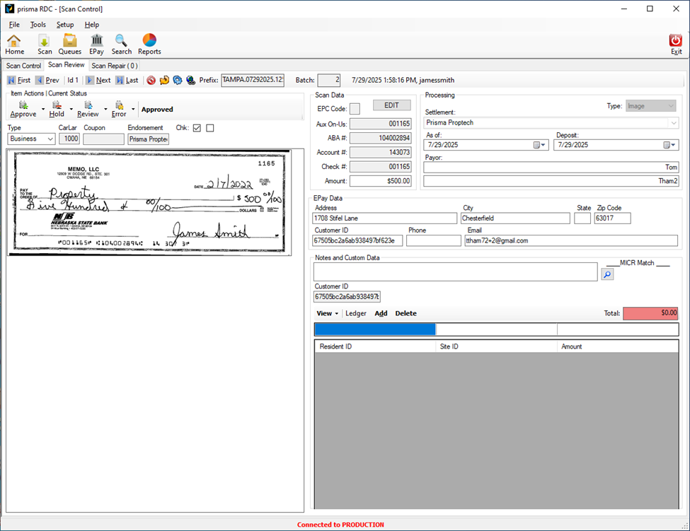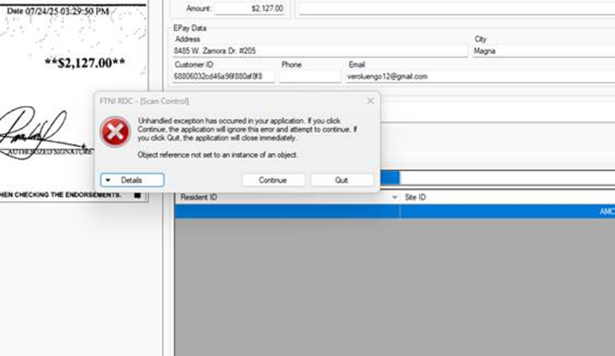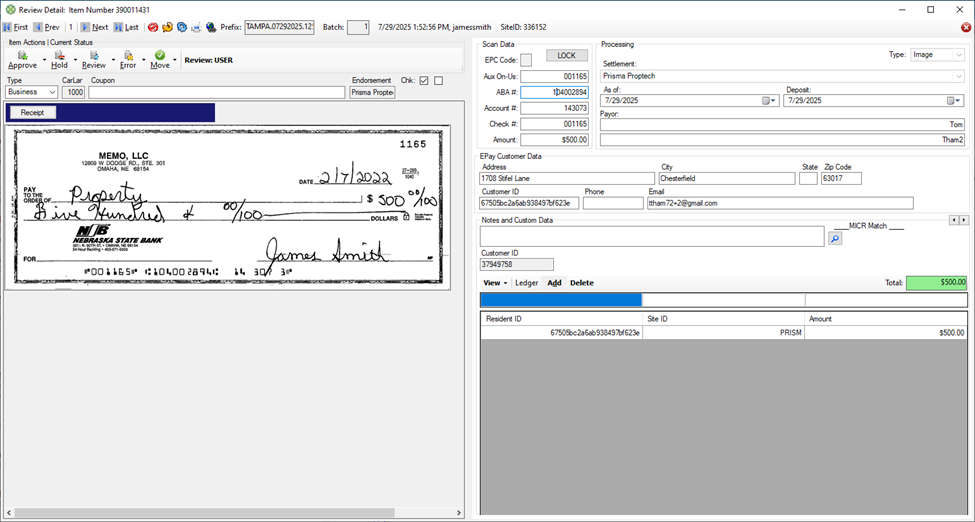 If a scanned check is submitted to Prisma without required information, the property manager will receive a notification. Upon receipt, please follow the steps outlined below: