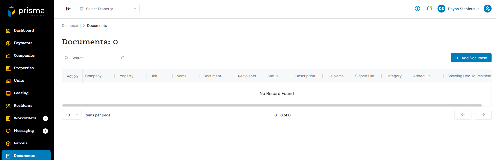 - Documents – The Documents section allows you to view all documents created or add a new one.
