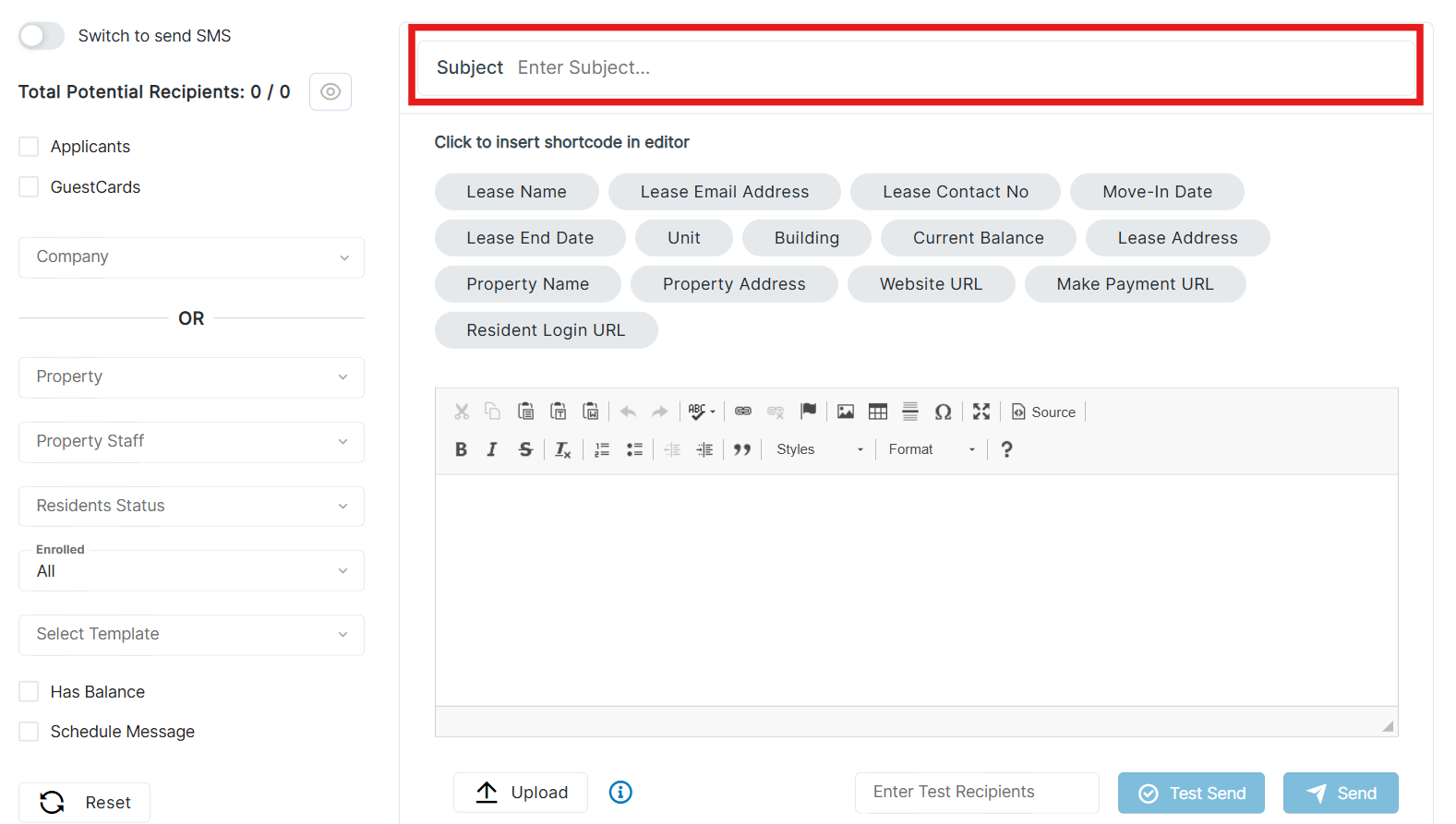 To post an announcement to appear on the resident portal dashboard, follow the steps below:
