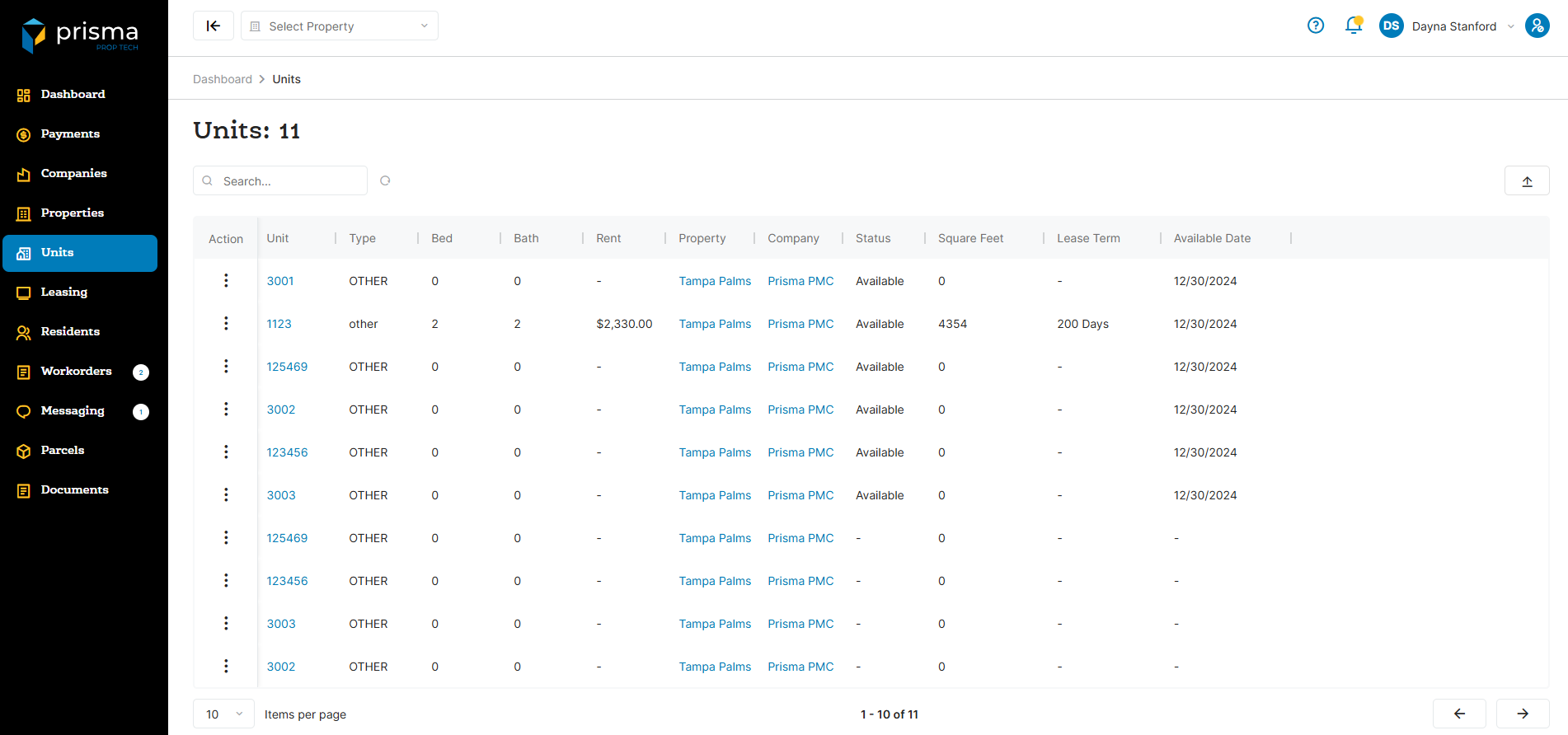- Units – The Units sectin gives you access to view all units your property is associated to.