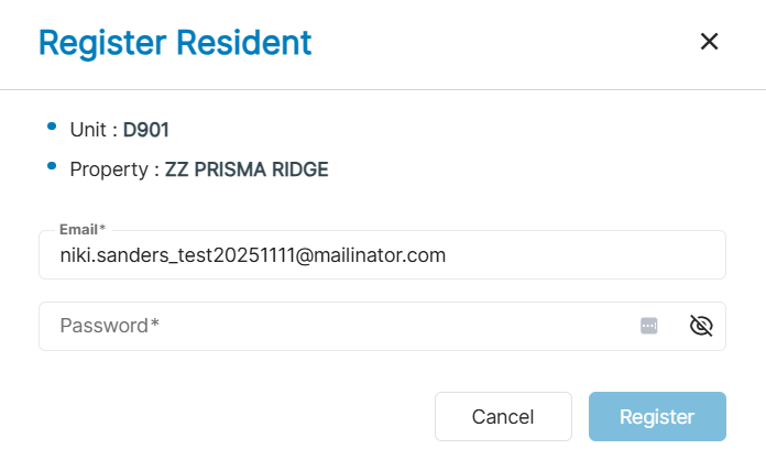- Register – Allws you to self register the resident in the event they are facing issues.