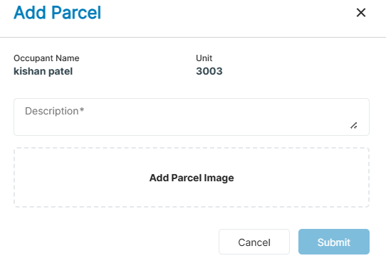 - Add Parcel – Allows you to notify the resident a package is waiting for them to pick up.