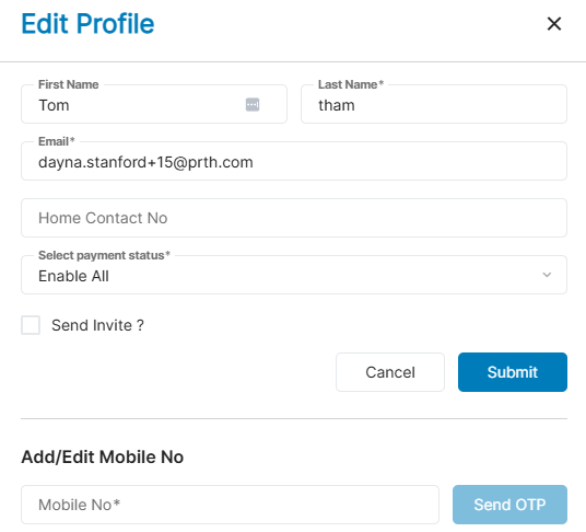 - Edit Profile – Allows you to modify the profile, such as adding an email address.